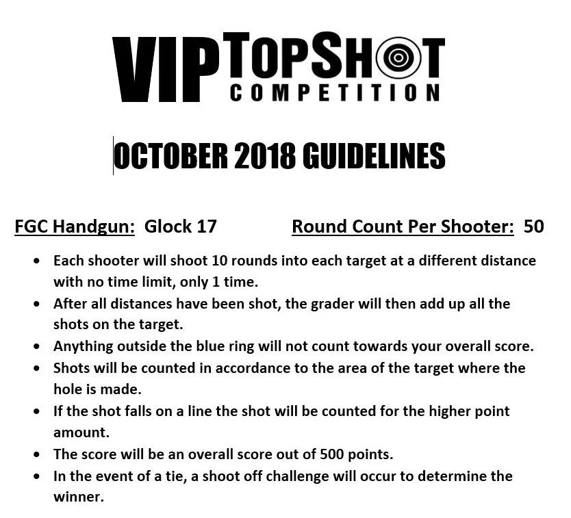 We've designed the 2018 VIP Club TopShot Shooting Competition based on feedback from our members as well as input from our training division instructors. Each month will have a slightly different format. The Shooting Competition will prepare our members for the upcoming end of year VIP Club Championship.